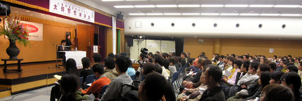 市制施行50周年を迎える大阪府大東市の記念事業、そして人権週間の特別講演の取り組みとして太田哲也が招かれました。市内の学校や、また大東市外でも告知などを積極的に行い、当日は会場に立ち見が出るほどたくさんの人が集まりました。