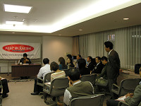 富士通が社員教育の一環として取り組んでいる「人間力オープンセミナー」。各業界で活躍する方々の話を聞き、自らの人間力を発見する場として社員自ら積極的に参加しています。以前に太田さんもその講師として招かれましたが、今回はスペシャルバージョンです。約30名の参加者は、事前に『クラッシュ』や『リバース』を読んでの参加となり、セミナー形式での充実の2時間となりました。