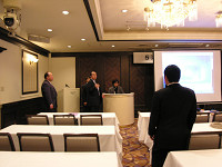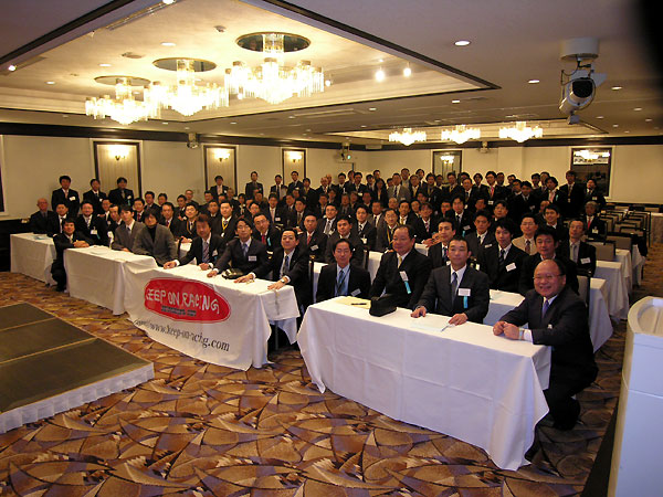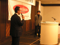 いつもながらに快調にトークを展開するする太田さん。「きょうは初老の方々も多くいるようですけど…」とのひとことで笑いをとったあとは、「変わり続けることをやめることは、チャレンジすることをやめること」とビシッとひとこと。社員のモチベーションをあげる傍ら、先が見えない今の時代に経営をする苦労も知る皆さんだけに、太田さんの話が深く刺さっていくようでした。