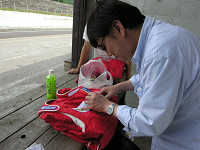 伊藤真一選手がピットにくると、「しんちゃん、心配したよ。元気?」と太田さん
