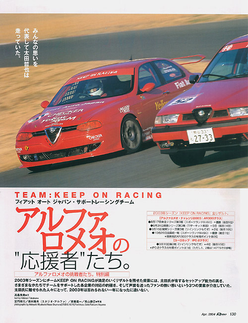 ■Rosso 2004年4月号に掲載された「アルファロメオの"応援者"たち。」の記事です。